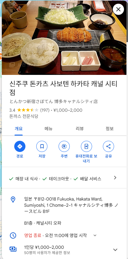 일본 후쿠오카 여행 2일차 _ 신주쿠 돈카츠 사보텐, 하카타 캐널시티점